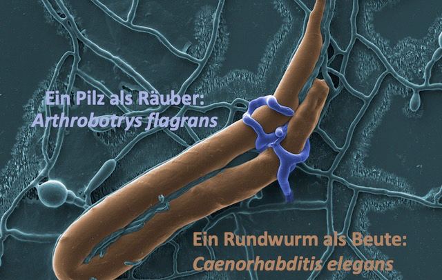 ausgelegte Schlingen locken. Die Nematoden kleben an den Fallen, und die Pilze